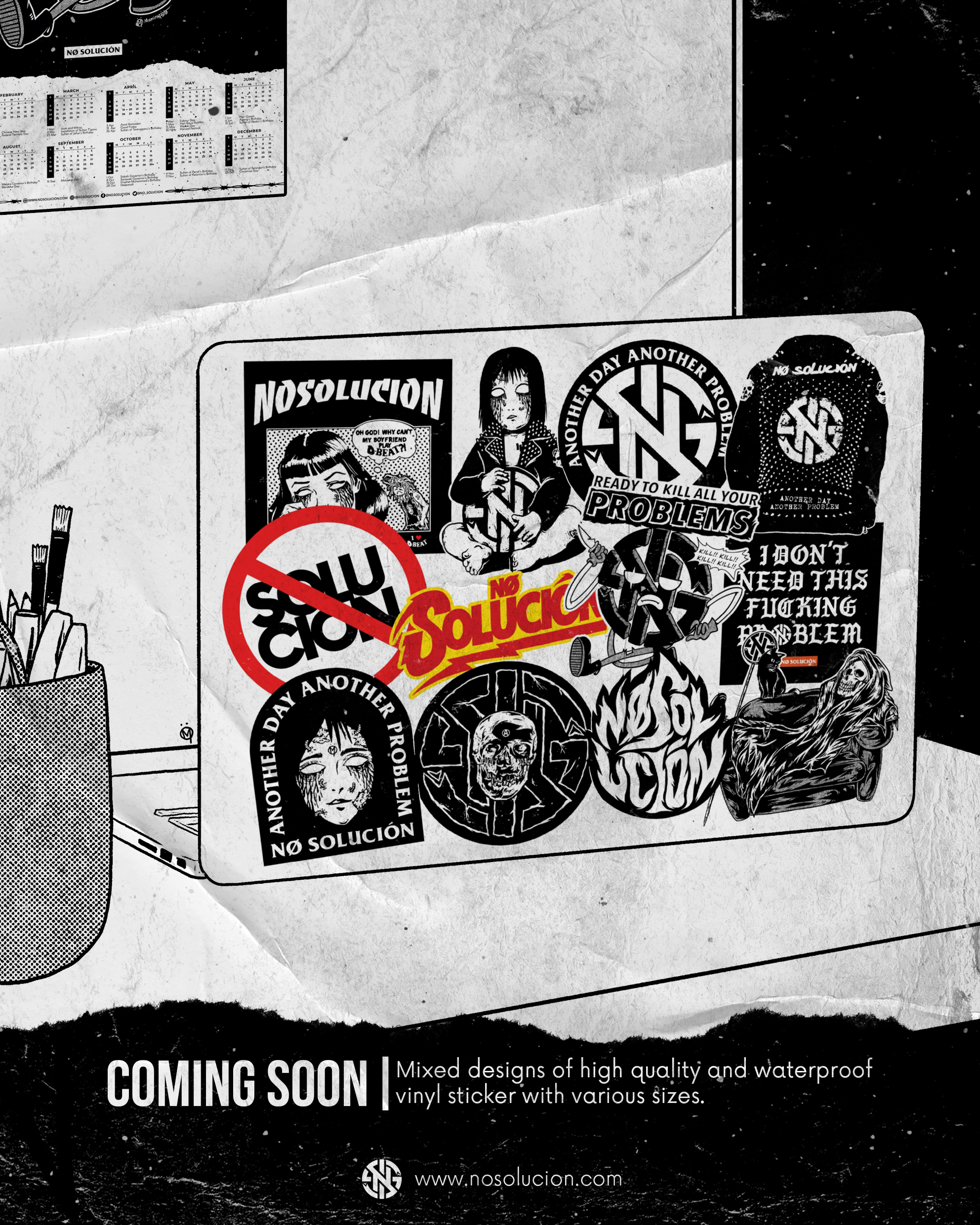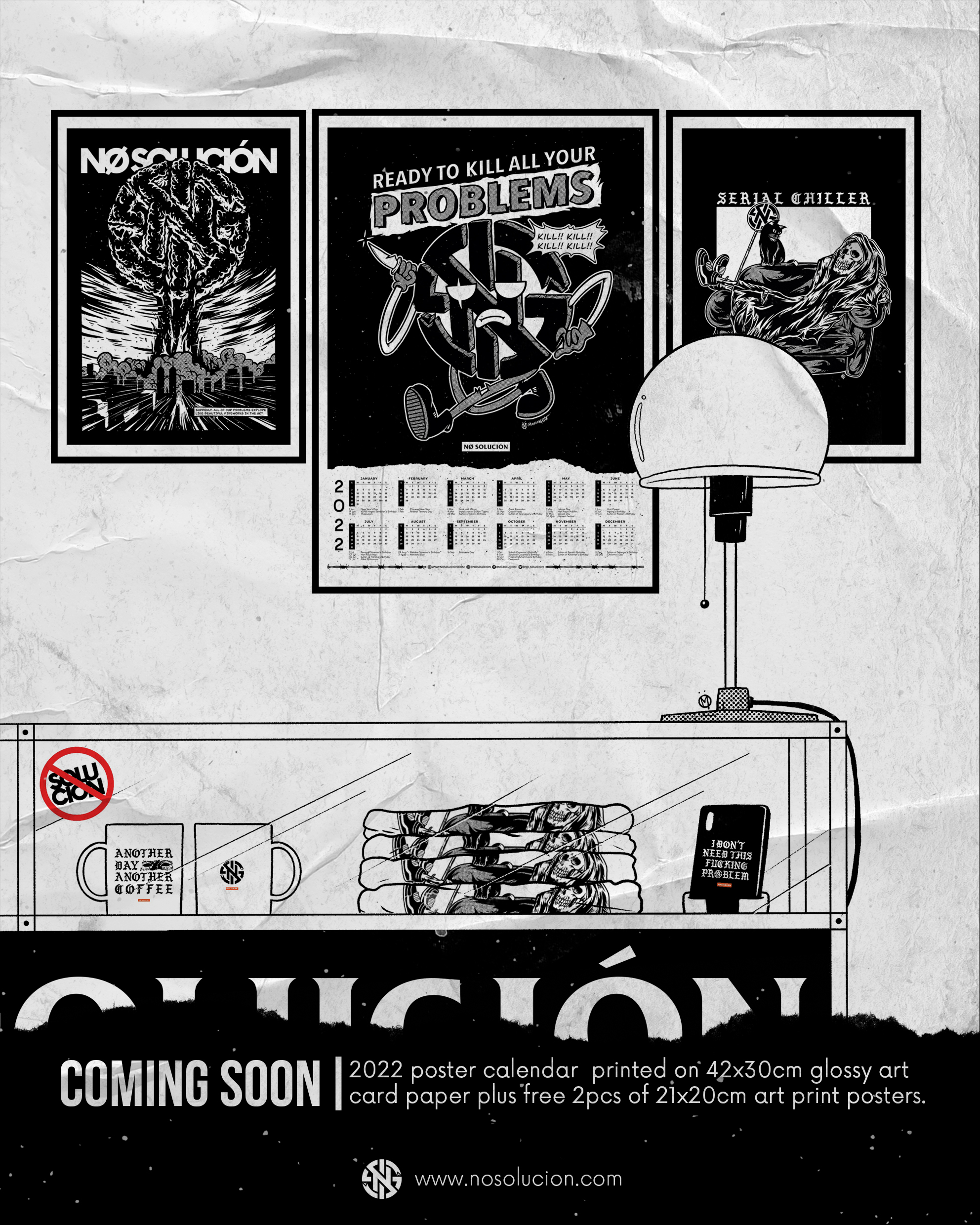 Just like a band releasing their album, we are also launching our proper debut album (or collection if you may call it) entitled 'KILL YOUR PROBLEMS' containing 22 products ready to kill all your problems. Almost two months of hard works with sleepless nights and tiring days. I poured all my love, sweat and tears into this project, hopefully you would like it. Thanks for your wonderful support and patience to make sure all these things happen. These are 14 illustrations that I did to promote the launching of the collection before the official release date. -Maminkfesto